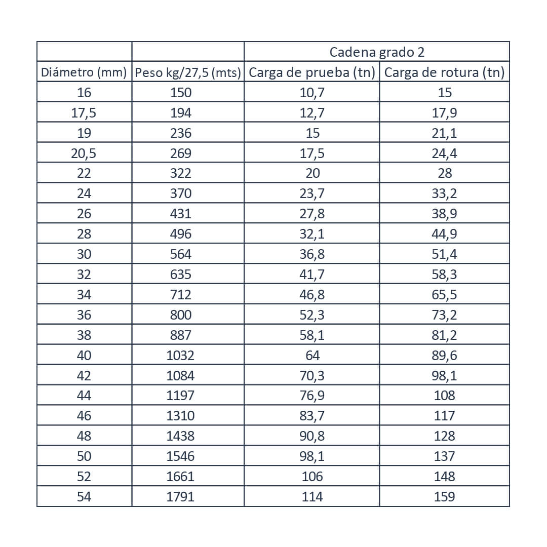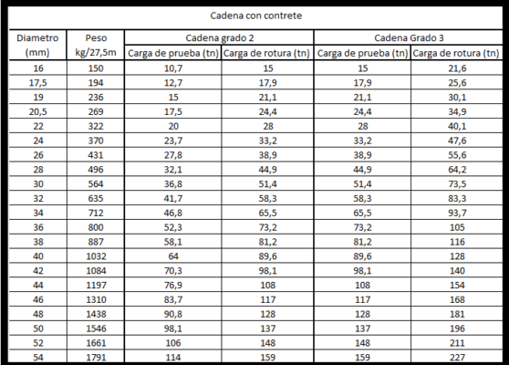 Cadena con contrete, con certificado de clase internacional, Largo 27,5m. Diámetro nominal: de Ø16mm a Ø54mm