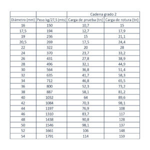 Cadena alta resistencia eslabón largo, medidas de Ø13mm a Ø19mm