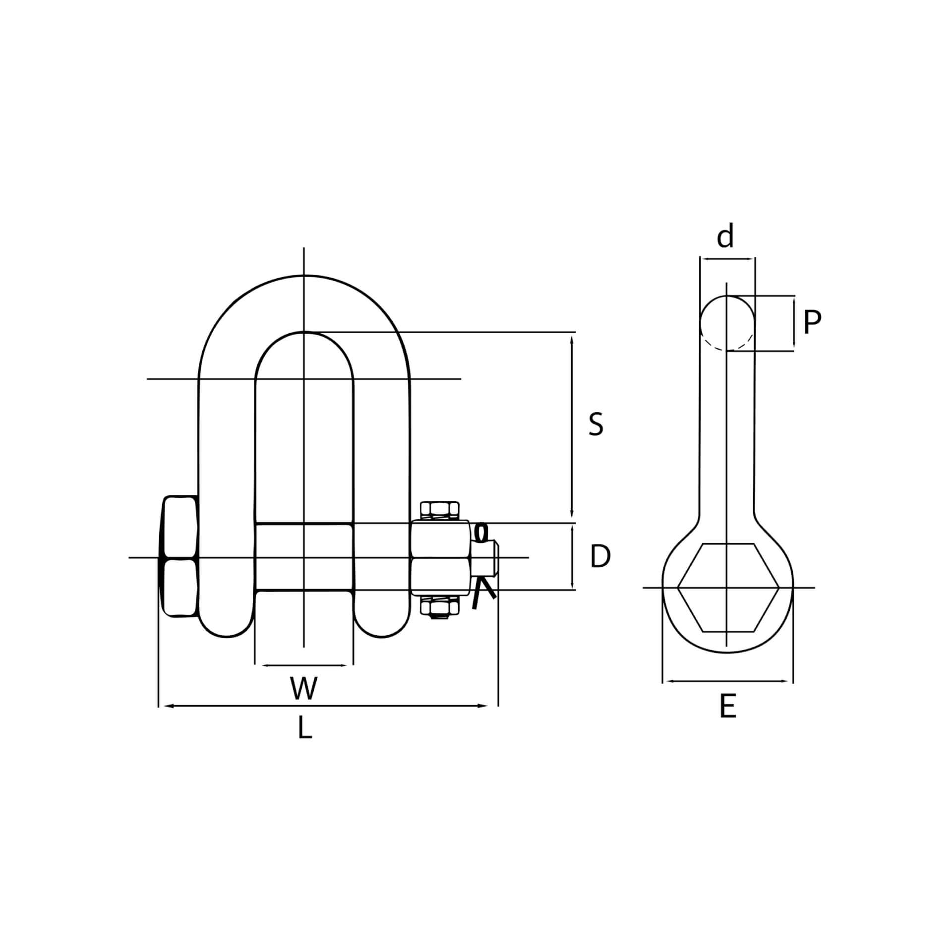 Grillete recto de perno pasante con tuerca y chaveta