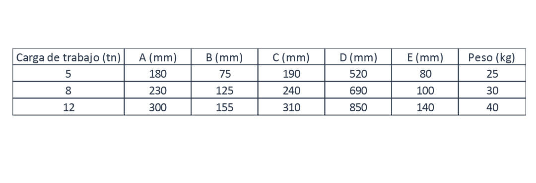 Pasteca tangón fija, SWL 5tn; SWL 8tn; SWL 12tn